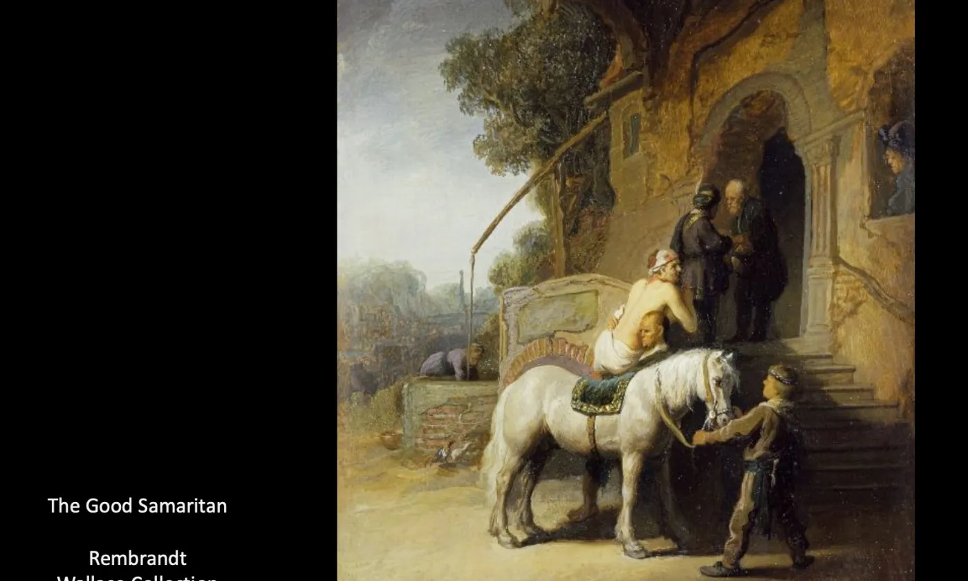 L'avocat connaît déjà la réponse : le chemin pour atteindre la vie éternelle est de suivre les deux commandements les plus importants, aimer Dieu et aimer son prochain. Le rusé homme de loi pose alors la question qui tue : "Et qui est mon prochain ?"