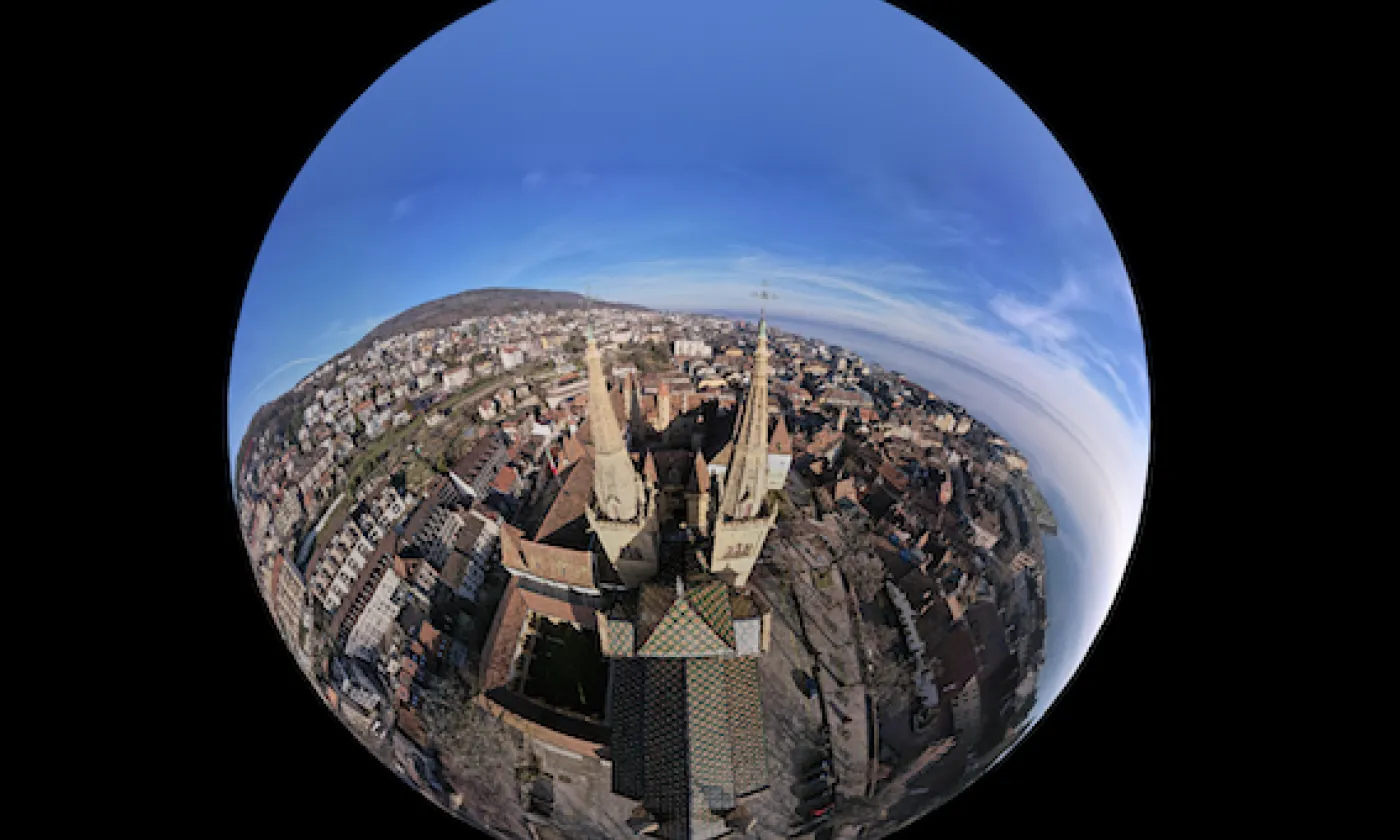 Visite de la Collégiale de Neuchâtel à 360°, en choisissant votre commentateur