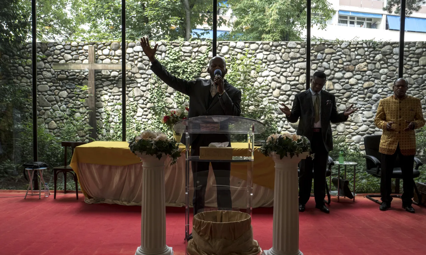 Drapés africains, bijoux éclatants, lunettes de soleil et vestons de cérémonies, les fidèles ne laissent rien au hasard dans le choix de leur tenue dominicale.