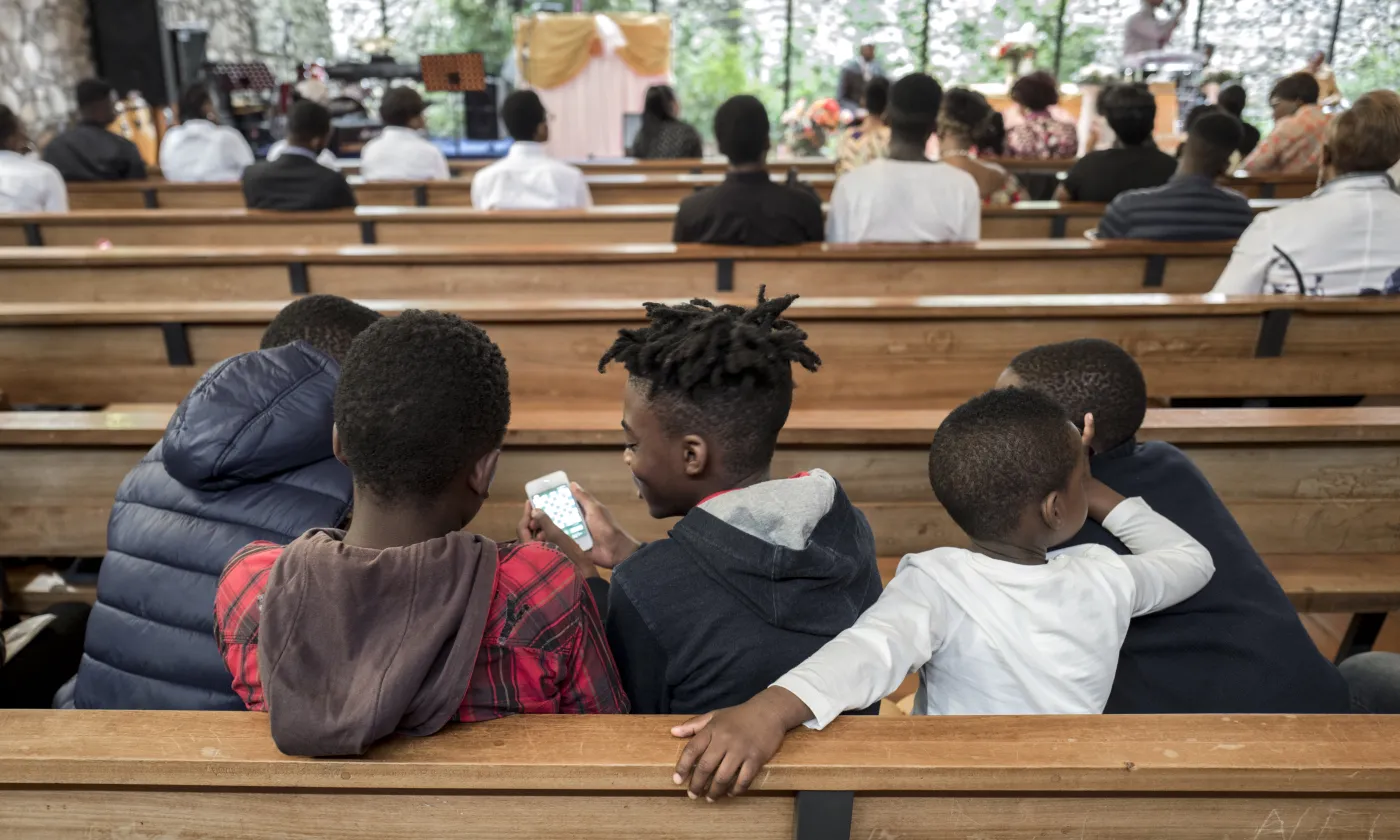 Le culte rassemble toutes les générations. Difficile pourtant pour les plus jeunes de rester attentifs à la parole, distraits par d’autres messages.
