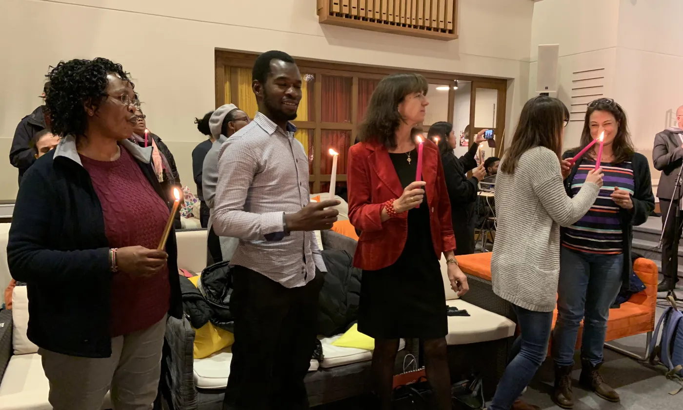 ©Myriam BettensLa pasteure Carolina Costa présidait le culte ©Myriam Bettens ©Myriam BettensChacun reçoit une bougie dont la mèche est allumée par une autre personne. ©Myriam BettensChacun reçoit une bougie dont la mèche est allumée par une autre personne. ©Myriam BettensChacun reçoit une bougie dont la mèche est allumée par une autre personne. ©Myriam BettensToute célébration de Noël se doit d’avoir une crèche L'affiche de l'événement Previous Next églisesJésus de Bethléem requérant d'asile Myriam Bettens17 décembre 2018Le temple de Plainpalais à Genève accueillait dimanche une relecture de la Nativité sous l’angle de la fuite et de la migration. Invités, les requérants d’asile et les réfugiés étaient mis à l’honneur.