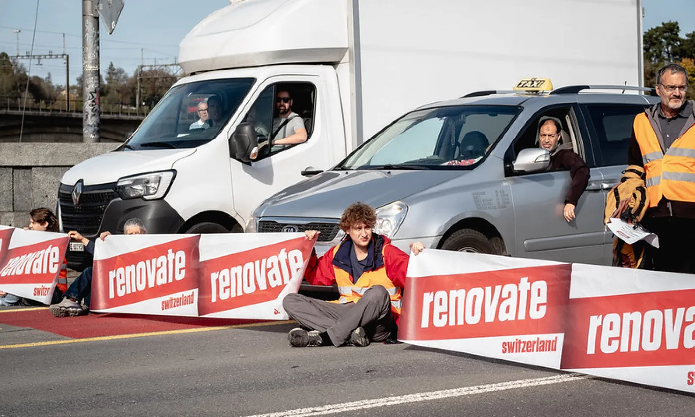 Depuis quelques temps, les grandes marches pour le climat connaissent un ralentissement. A la place, on voit fleurir des groupes d’activistes qui multiplient des actes de désobéissance civile dans l’espace publique. Une des revendications principales de Renovate Switzerland est de demander au Conseil fédéral d’octroyer des crédits afin d’améliorer l’isolation des bâtiments et de réduire ainsi les émissions de CO2.